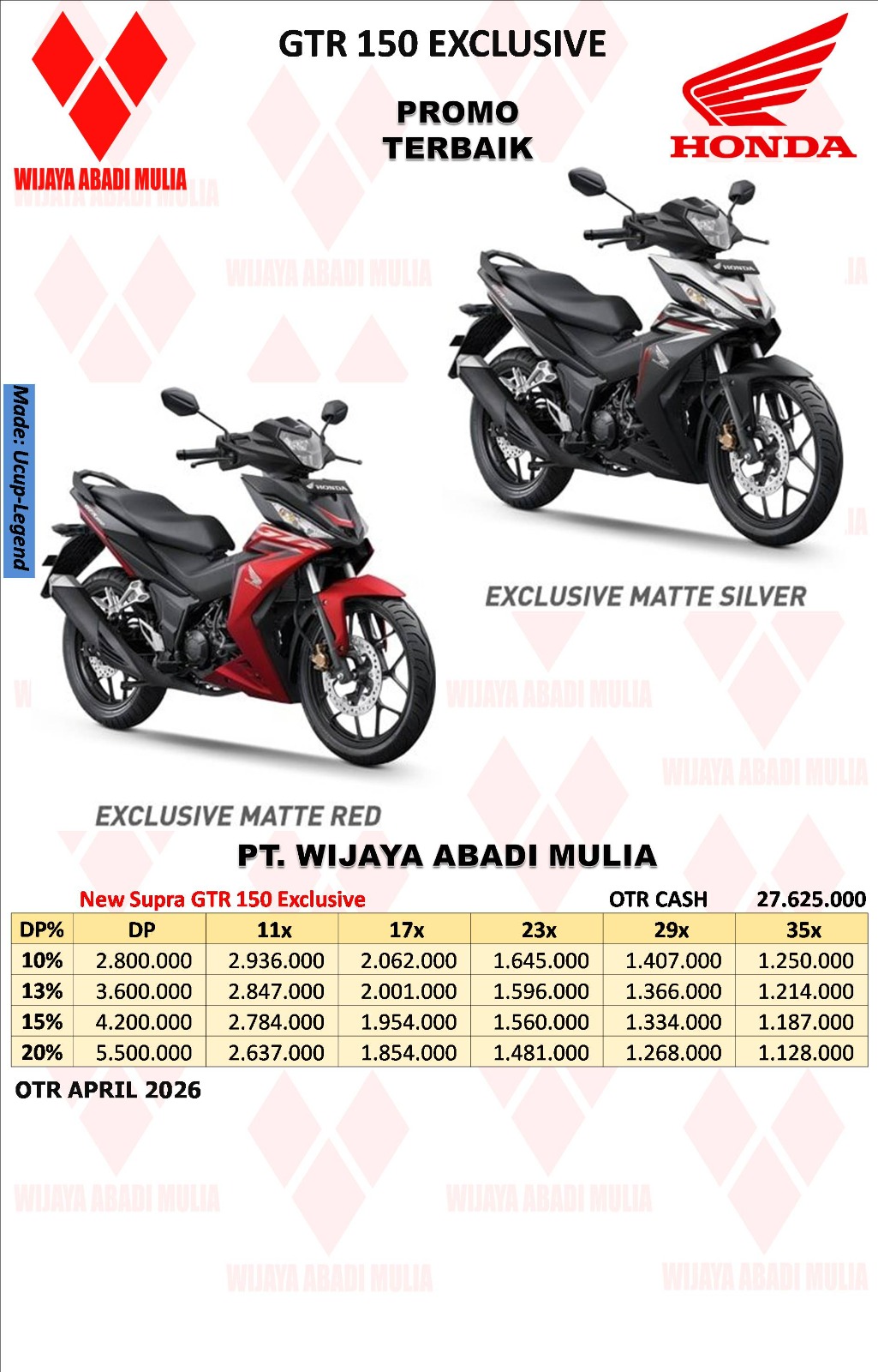 Kami bekerjasama dengan Leasing-leasing terpercaya dan berpengalaman untuk membantu pembiayaan Motor Honda Anda, dan selalu akan memberikan promo-promo menarik untuk Anda.